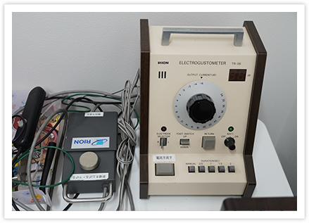 電気的に舌を刺激して調べます。少しピリピリします